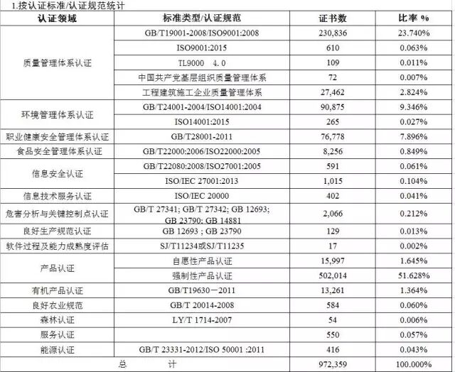 获CNAS认可的认证机构颁发的现行有效认证证书共972,359份
